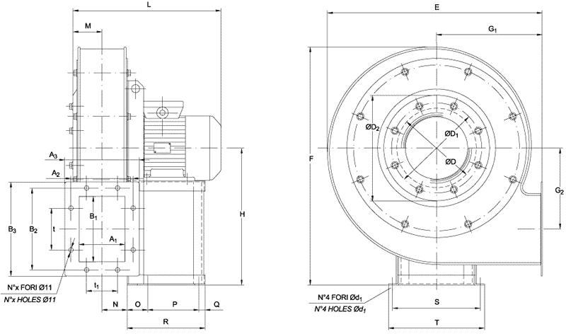 Compact high-pressure centrifugal fans designed for industrial air extraction and gas transport applications.